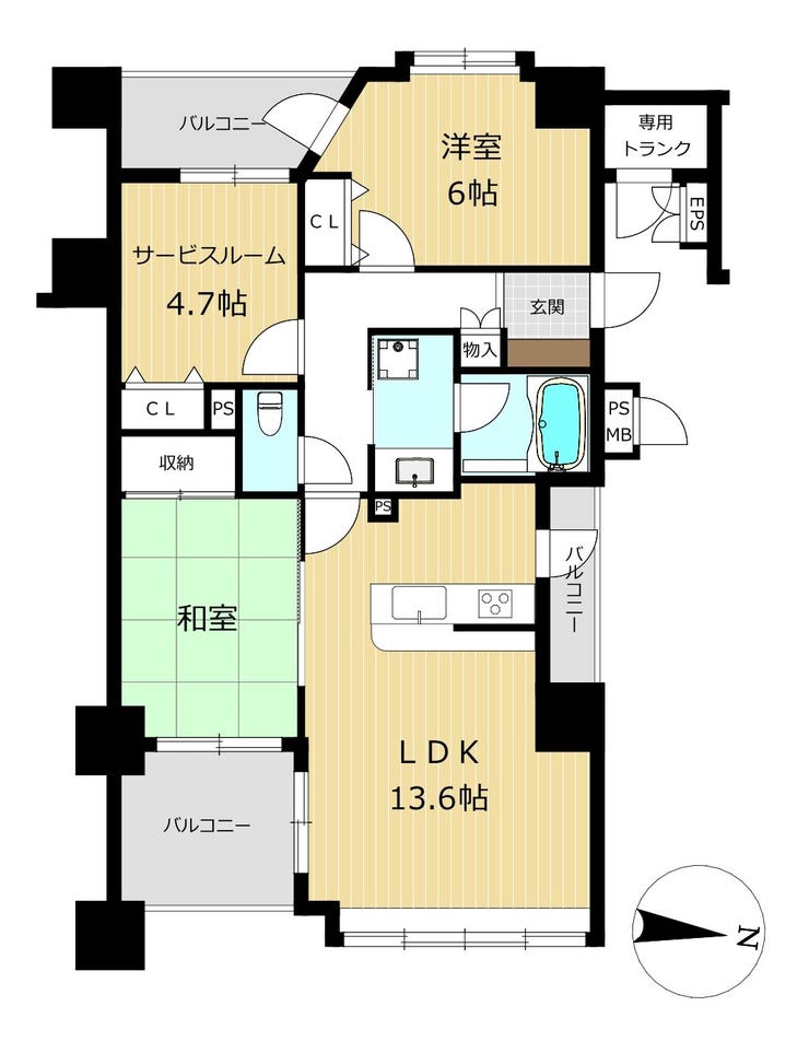 | 専有面積 | 壁芯 68.04㎡ | 所在階 | 14階建/6階部分 |
