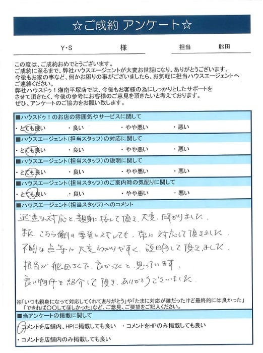 良い物件を紹介して頂き、ありがとうございました。
