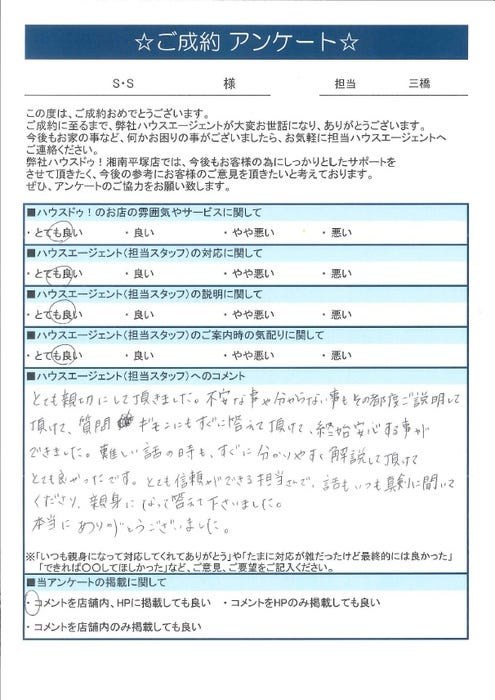 とても良かったです。とても信頼できる担当さんで、話もいつも真剣に聞いて